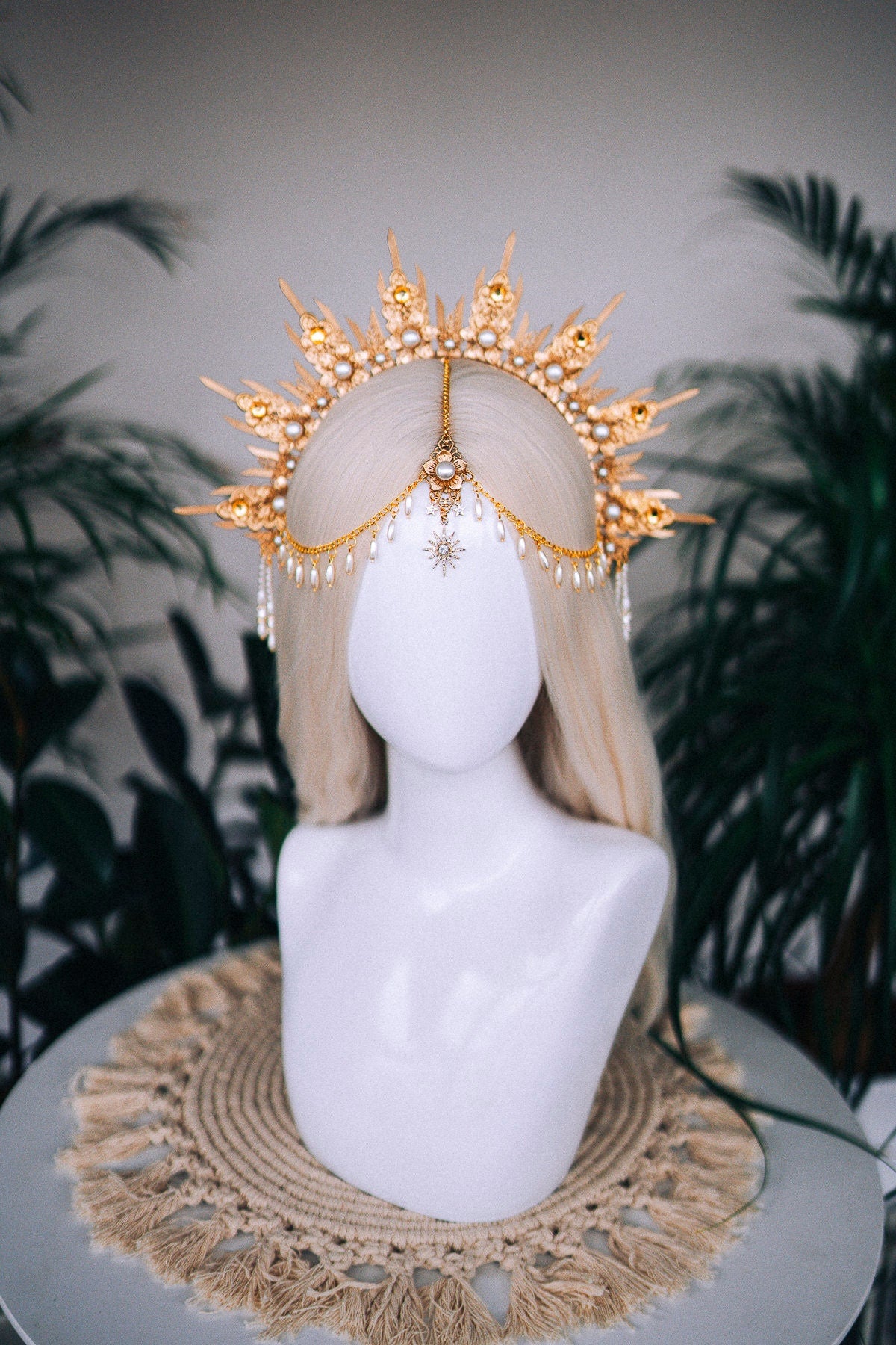 Imagine the transformation… golden rays shimmering around your face, pearl accents catching every whisper of light, and a presence so enchanting that every photograph, every step, every look becomes unforgettable. This crown was created for sacred celebrations, weddings, editorial portraits, goddess sessions, rituals, and every moment you want to elevate into pure magic. 🌞